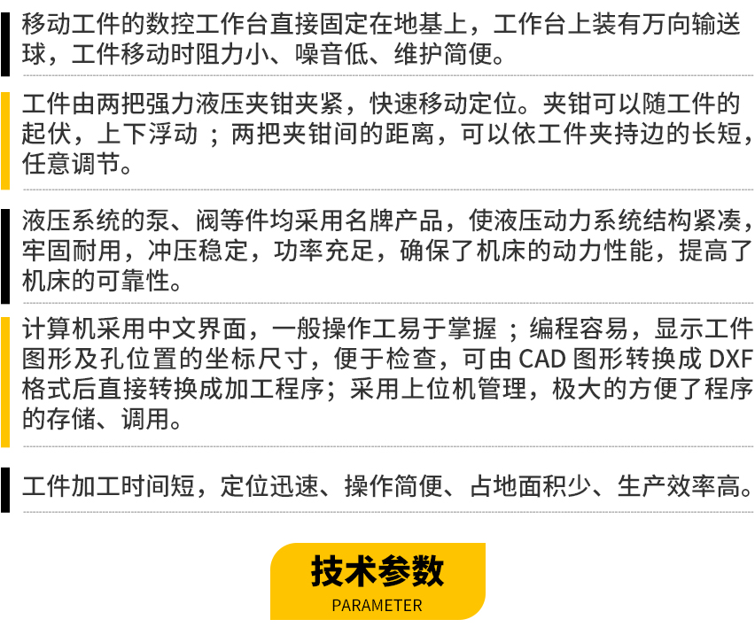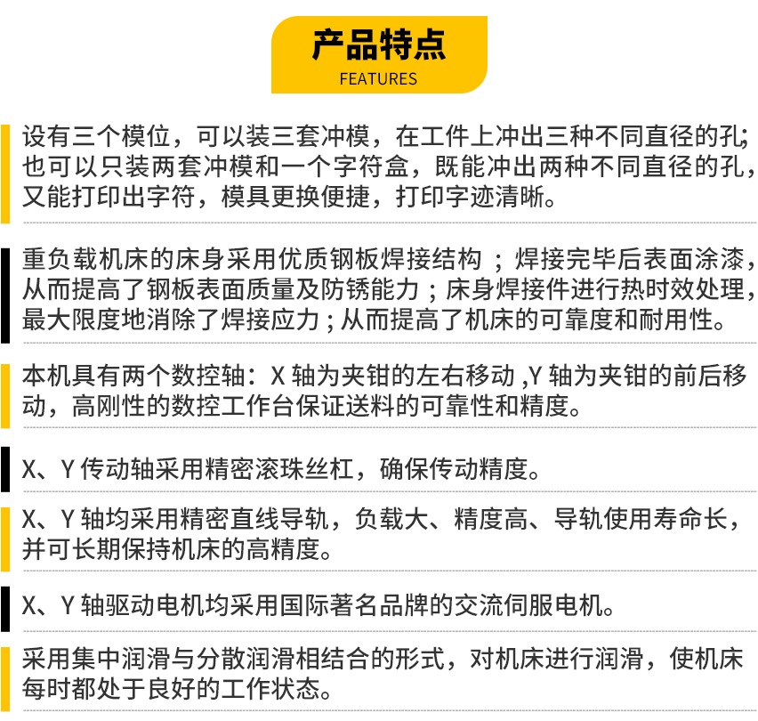 數控液壓平板沖孔機,主要用于鋼結構、電力和汽車等行業中小規格板材的沖孔,工件一次裝夾后可進行沖孔加工,確保孔的位置精度,具有很高的工作效率和自動化程度,尤其適用于多品種的加工。
